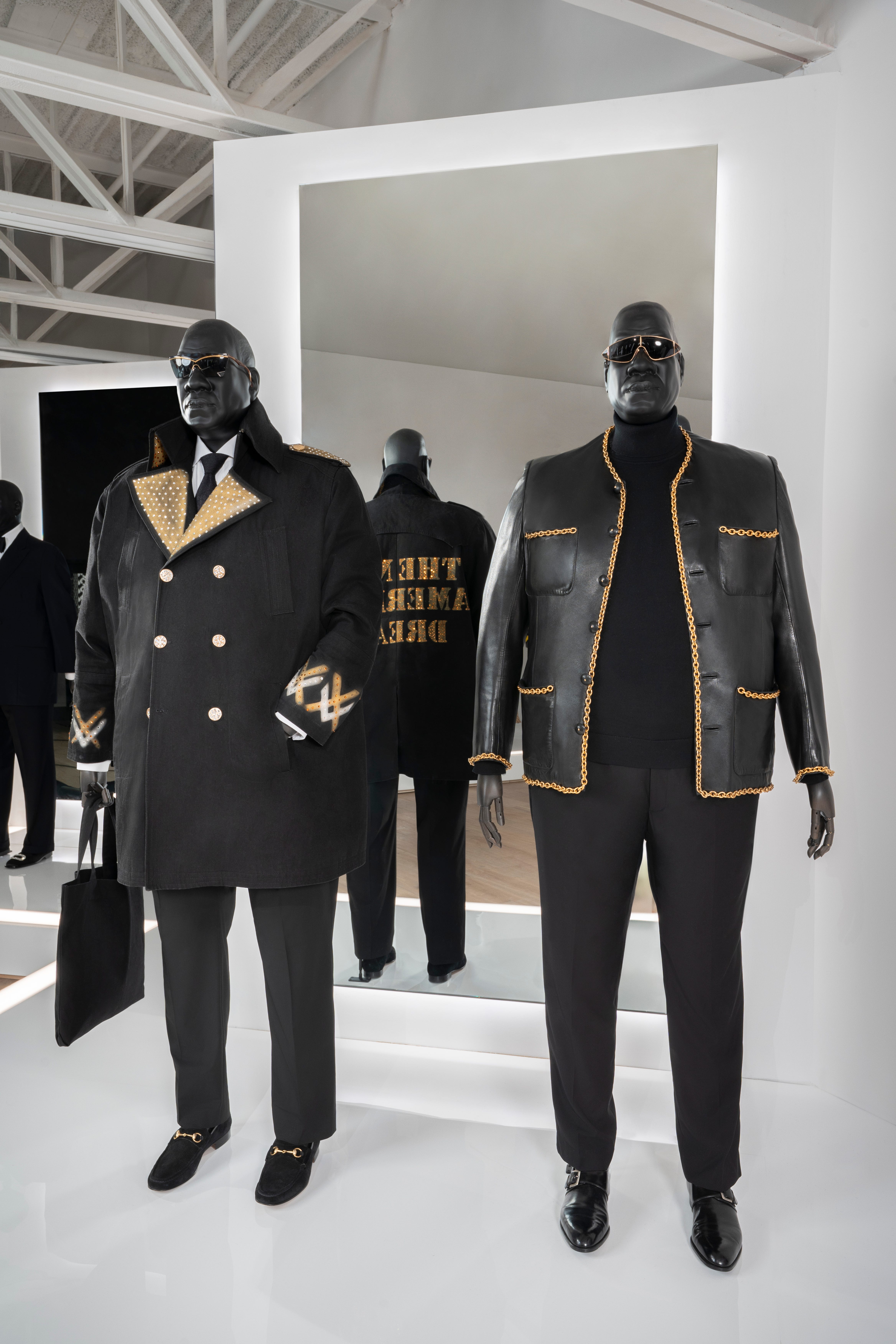 Walking into that exhibit felt like entering a modern-day tomb of a fashion pharaoh. Six-foot-six mannequins with onyx heads sculpted in André’s exact likeness stood like monuments to his genius. Every ensemble — cut, craft, and material — radiated his supernatural sense of style.