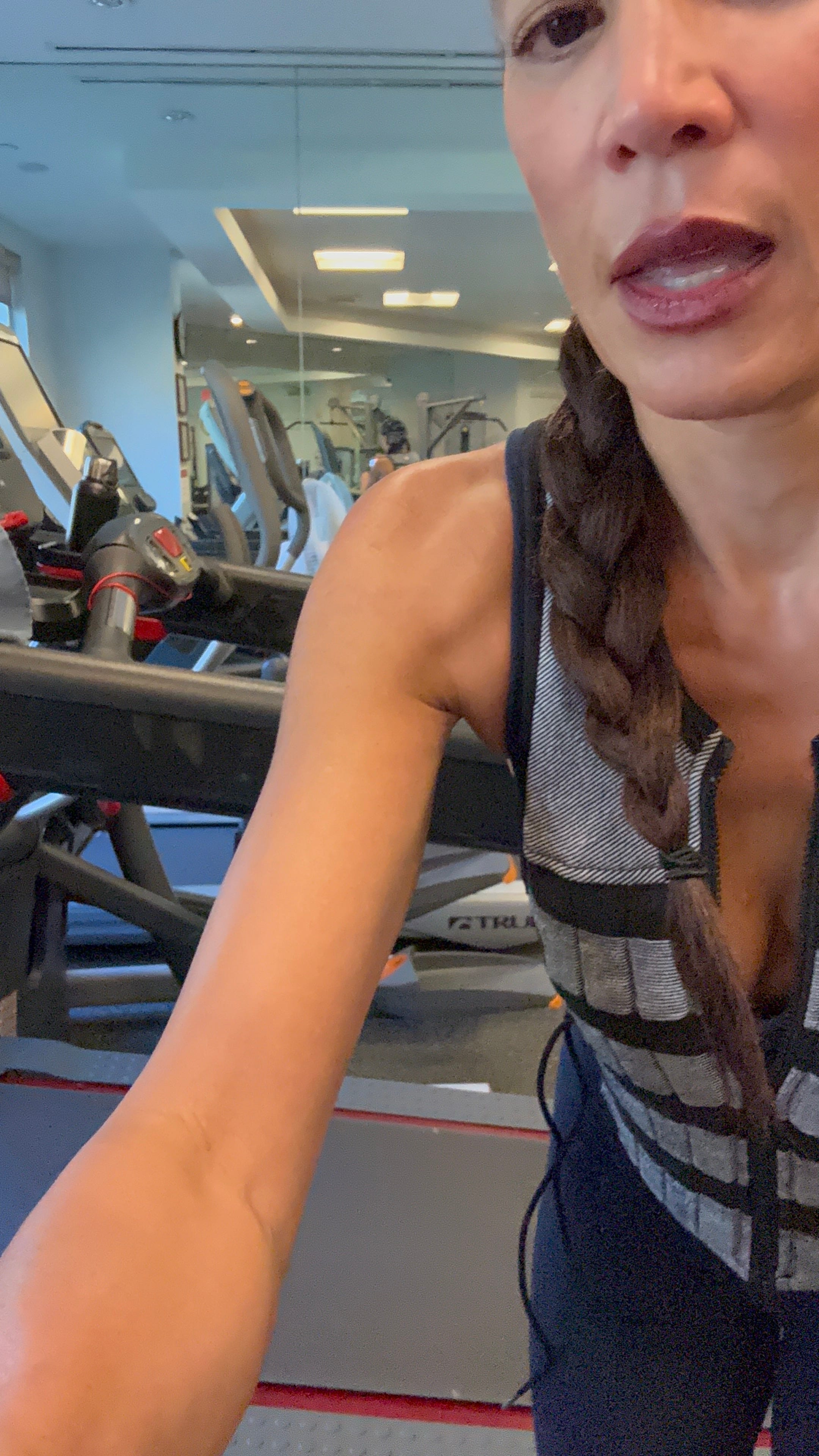 Cardio still has its place: three times a week I go flat-out for 30 to 60 minutes — brisk walking with a weighted vest, or swimming laps. On bad-weather days, I’ll grudgingly get on a stationary bike. Twice a week, I lift heavy: squats and deadlifts with 50-pound (22.5 kg) dumbbells. With heavy weights, it’s quick and efficient — 10 to 12 reps to muscle failure, and I’m done in 20 minutes.